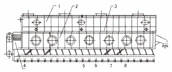1、上腔 2、風(fēng)箱 3、流化床板 4、箱式激振器